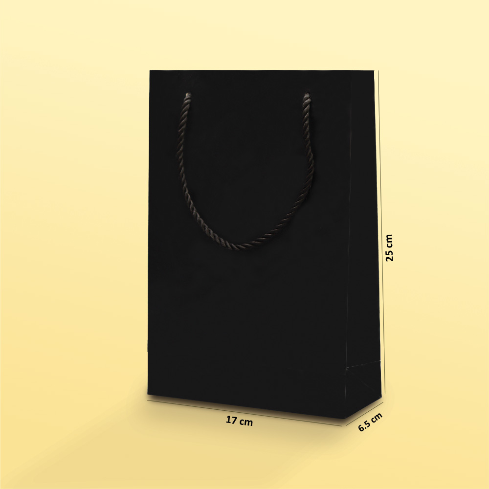 بگ مقوایی مشکی مات سایز 6/5*25*17(بسته 25 عددی)