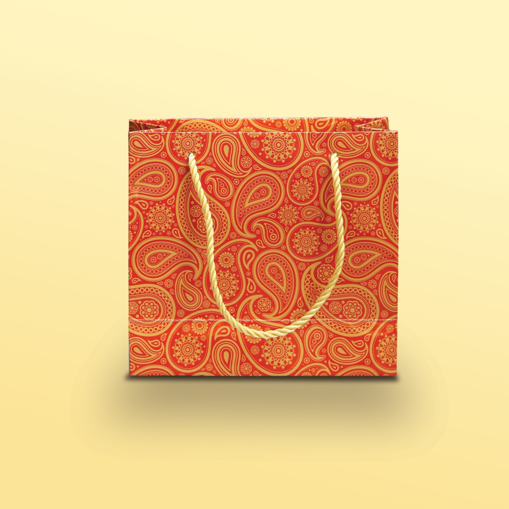 بگ مقوایی ترمه قرمز سایز7*15.5*17(بسته 25 عددی )