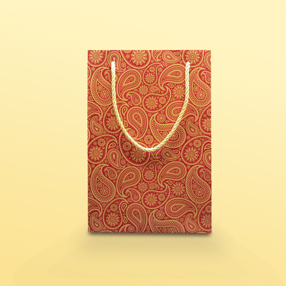 بگ مقوایی ترمه قرمز سایز 6.5*25*17(بسته 25 عددی )